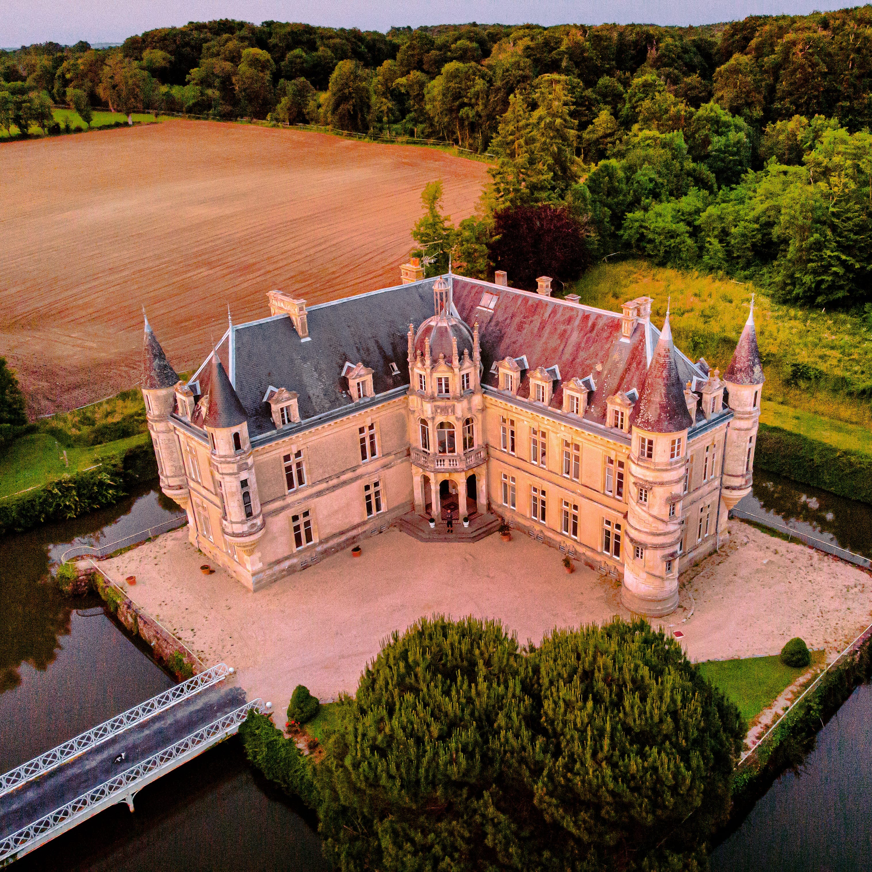 As we walked towards the romantic ruined orangery across the wildflower meadow, I could already imagine charming weddings and events being hosting in this unique venue and everyone staying on site at the cottages until we were able to do up more château chic bedrooms inside the château and expand our available accommodation. I ran down our list again: 16 hectares of land, forest, multiple possible venues, centred in a pretty village but not too close to neighbours, 4 working holiday cottages, 4 swimming pools, and then a château of fairytale vision, skirted by a moat no less. This château was so perfectly, The One on both paper and in heart.